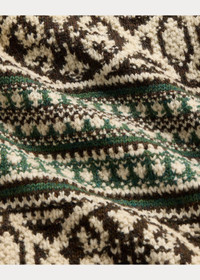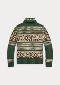 Knit with wool yarns from Scotland. Inspired by vintage blankets from the 1940s. Constructed with various mixed stitching at the body and garter-stitched detailing at the collar. Ribbed cuffs and hem. Leather zipper pull. DETAILS - Size medium has a 25.5" body length, a 16.75" shoulder, a 40.5" chest, and a 25" sleeve length. Sleeve length changes 1" between sizes. - Shawl collar. Full-zip front. Leather zipper pull. - Long sleeves with rib-knit cuffs. - Two front waist patch pockets. - Rib-knit hem. - 100% wool (exclusive of decoration). - Machine washable. - Imported. - Style Number: 100030235