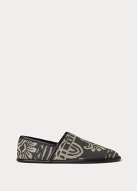Made with cotton jacquard that is washed and tinted. Lined with shearling. Leather binding throughout. Suede outsole. DETAILS - Rounded toe. - Slip-on styling. - Leather binding. - Padded insole. Lined with shearling. - Suede outsole. - Upper: 100% cotton. Binding and outsole: 100% leather. Lining: 100% sheep shearling. - Imported. Shearling origin: Australia. - Comes in a signature box. - Style Number: 100066787