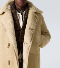 Inspired by the heritage of the American West, Ralph Lauren's RRL label creates vintage-inspired designs for every day. This coat showcases a smooth suede construction, finished with paneled front pockets and a soft shearling lining. Product Details - Material: 100% sheep leather (suede) - Care instructions: specialist clean - Made in India - Designer color name: Vintage Cream - Item color: beige - Material II: 100% shearling - Contains non-textile parts of animal origin - Pockets: side slit pockets - Closure: toggle fastenings - Item number: P01112622 Size & Fit - True to size - For a closer fit, we recommend taking one size down - Dropped shoulders - Oversized - Non-stretchy fabric - Falls below the hip - Height of model is 189cm-74.5" and wears a size L