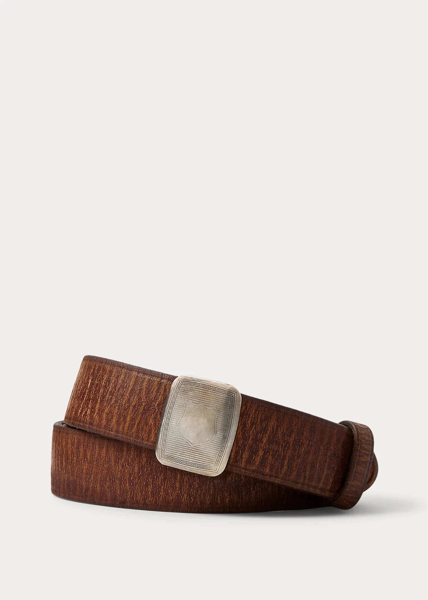 Made in Italy with vegetable-tanned leather. Inspired by classic turn-of-the-century slider belts. Custom silver-finished brass plaque buckle. DETAILS - 1.25" wide. - Silver-finished brass plaque slider buckle. - Single leather keeper. - Slightly pointed tip. - Leather. - Made in Italy. - Style Number: 100035705