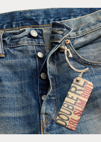 Slim-fitting bootcut jeans made in America with Tennessee-grown cotton. Yarn is ring-spun and rope-dyed in Japan using true indigo that has been specially developed to impart a red-blue cast. Woven on vintage wooden shuttle looms in Japan to create 16 oz. right-hand twill. Selvedge construction and wash inspired by 1930s denim. Hand-finished in a process that involves up to 50 individual steps using specialized tools and techniques. Button fly. Sanforized® to minimize shrinkage. DETAILS - Slim Boot Fit: a medium rise with a slim thigh and leg. Bootcut opening. - Size 32W has a 9.5" rise and a 17.25" leg opening. - Hand-set, chain-stitched waistband with inserted belt loops for added durability. Button fly with a signature buttoned closure ensures a consistent fit through years of wear. - American-made buttons, rivets, and washer burrs. Five-pocket styling. “RRL” embroidery at the selvedge coin pocket. Twill pocket lining. - Leather “RRL”-debossed logo label at the back right waist. - Shell: 100% cotton. Patch: 100% leather. - Machine washable. For best results, wear 90 days without washing. - Made in USA with imported components. - Dyed with true indigo, which may rub off onto fabrics, leather, and upholstery. - Style Number: 100083350