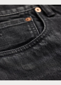 Slim-fitting bootcut jeans made in America from 15.3 oz. right-hand twill that is shuttle-woven in Japan. Worn-in wash with a warm tint for a vintage look. Selvedge construction inspired by 1930s denim styles. Button fly. Sanforized® to reduce shrinkage. DETAILS - Slim Boot Fit: a medium rise with a slim thigh and leg. Bootcut opening. - Size 32W has a 9.5" rise and a 17.25" leg opening. - Hand-set, chain-stitched waistband with inserted belt loops for added durability. Button fly with a signature buttoned closure ensures a consistent fit through years of wear. - American-made buttons, rivets, and washer burrs. Five-pocket styling. “RRL” embroidery at the selvedge coin pocket. Twill pocket lining. - Roughout suede “RRL”-debossed logo label at the back right waist. - Shell: 100% cotton. Patch: 100% leather. - Machine washable. For best results, wear 90 days without washing. - Made in USA with imported components. - Coloring may rub off onto fabrics and upholstery. - Style Number: 100083351
