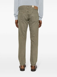 slim-cut cotton jeans Highlights - Olive green - Cotton - Denim - Logo patch to the rear - Slim cut - Mid-rise - Belt loops - Front button and zip fastening - Classic five pockets Imported Composition Cotton 100% SIZE & FIT Model measurements Height 6 ft 0 in(1.84 m) Bust/Chest 35.82 in(91 cm) Hips 37 in(94 cm) Waist 28.34 in(72 cm) FittingInformation Designed for a slim fit, these jeans offer a comfortable fit that sits just away from the leg Sturdy and hard-wearing, this denim piece offers no stretch This piece fits true to size – take your usual size Washing instructions Machine Wash