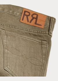 Slim-fitting jeans made from 13.6 oz. Japanese right-hand twill. Zip-fly construction. Sanforized® to minimize shrinkage. DETAILS - Slim Fit: a medium-low rise and a slim thigh and leg. - Size 32W has a 9" rise and a 14.5" leg opening. - Hand-set, chain-stitched waistband with inserted belt loops for added durability. Zip fly with our signature buttoned closure. - American-made buttons, rivets, and washer burrs. Five-pocket styling. “RRL” embroidery at the coin pocket. - “RRL”-debossed logo label at the back right waist. - 100% cotton. - Machine washable. For best results, wear 90 days without washing. - Imported. - Due to the natural characteristics of this material, the coloring may rub off onto fabrics and upholstery. - Style Number: 648411