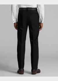 Slim-fitting trousers tailored in Italy. Worsted wool gabardine and satin sourced from established textile mills in England. Western-style belt loops and triangular reinforcements at the pockets. DETAILS - Slim fit. - Size 32W has a 10.25" rise and a 15.5" leg opening. - Western-style belt loops. Button fly with a buttoned closure. Curtain waistband. Interior buttons for braces. - Two front angled pockets. Two back flapped pockets. Triangular reinforcements at the pockets. - Satin stripe along the outer side of each leg. Lined to the knees at the front. - Trouser comes unhemmed with a 38" inseam. Alterations available in Ralph Lauren retail stores. - Shell: 100% wool. Lining: 51% cotton, 49% viscose. - Dry clean. Made in Italy. - Model is 6'1" (185 cm) and wears a size 32W. Style Number: 644102