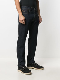raw indigo denim jeans Highlights - Dark wash indigo blue - Cotton - Front button and zip fastening - Classic five pockets - Embroidered logo to the front - Belt loops - Logo patch to the rear - Straight leg Made in United States Composition Outer: Cotton 100%, Leather 100% Lining: Cotton 100% SIZE & FIT Model measurements Height 6 ft 1 in(1.85 m) Bust/Chest 37.79 in(96 cm) Hips 37.4 in(95 cm) Waist 30.7 in(78 cm) FittingInformation This piece fits true to size. We recommend you get your regular size Regular fit Made with a mid-weight non-stretch fabric Washing instructions Machine Wash