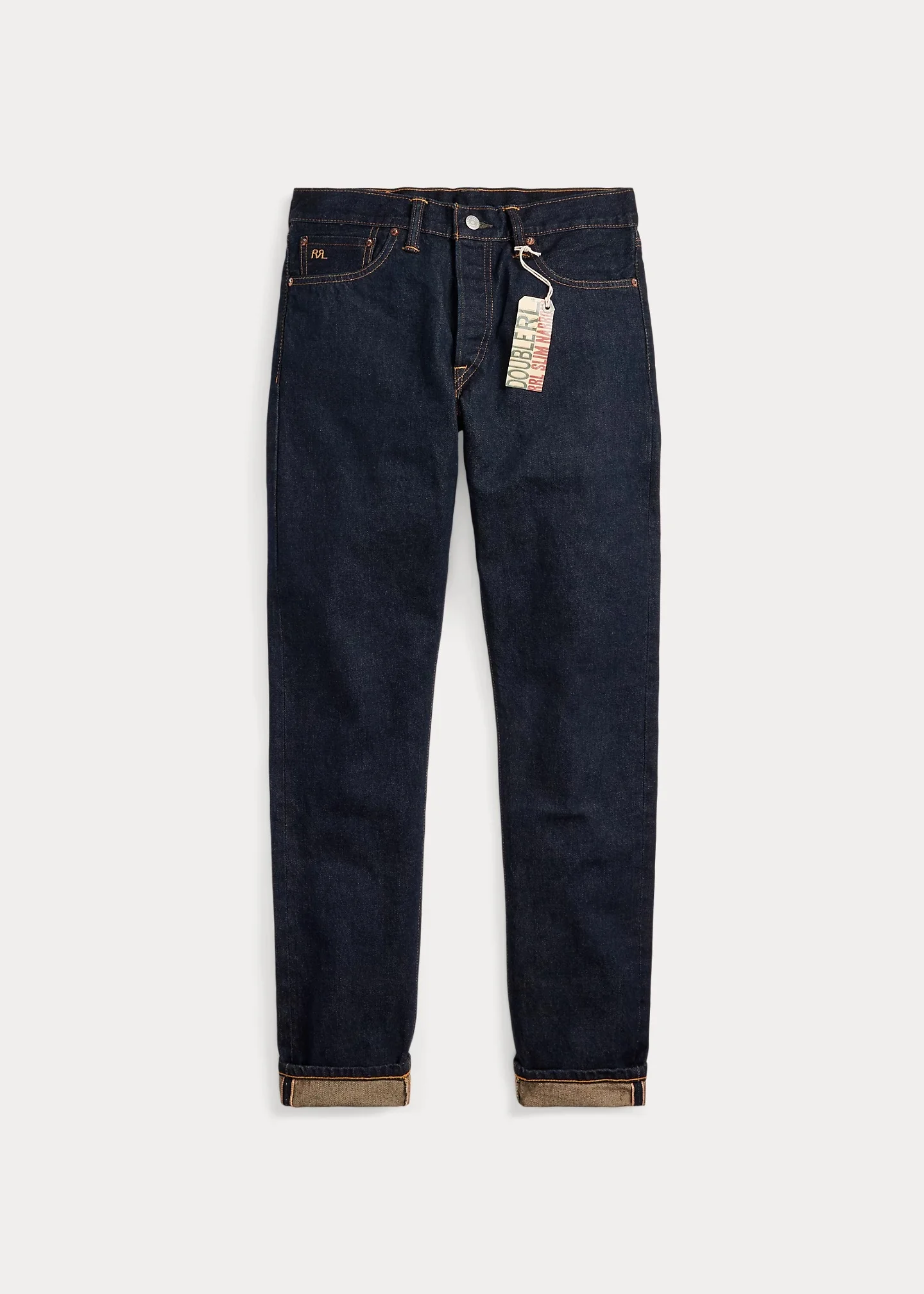 Made in America from 16.25 oz. Japanese denim. Custom-developed selvedge fabric is in Double RL’s deepest indigo shade with an authentic red-blue cast. Specially finished to control shrinkage while keeping the fabric’s original character intact. Sanforized® to minimize shrinkage. DETAILS - Slim Narrow Fit: Double RL’s slimmest fit. A medium-low rise, a slim, tapered leg, and narrow leg openings. - Size 32W has an 8.75" rise and a 13.5" leg opening. - Belt loops. Button fly with our signature buttoned closure ensures a consistent fit through years of wear. - American-made buttons, copper-tone rivets, and washer burrs. Five-pocket styling. “RRL” embroidery at the selvedge coin pocket. Heavy twill pocket lining. - Leather “RRL”-debossed logo label at the back right waist. - 100% cotton (exclusive of decoration). - Machine washable. For best results, wear 90 days without washing. Made in USA with imported components. - Dyed with indigo, which may rub off onto fabrics, leather, and upholstery. - Model is 6'1" (185 cm) and wears a size 32W x 32L. - Style Number: 449232