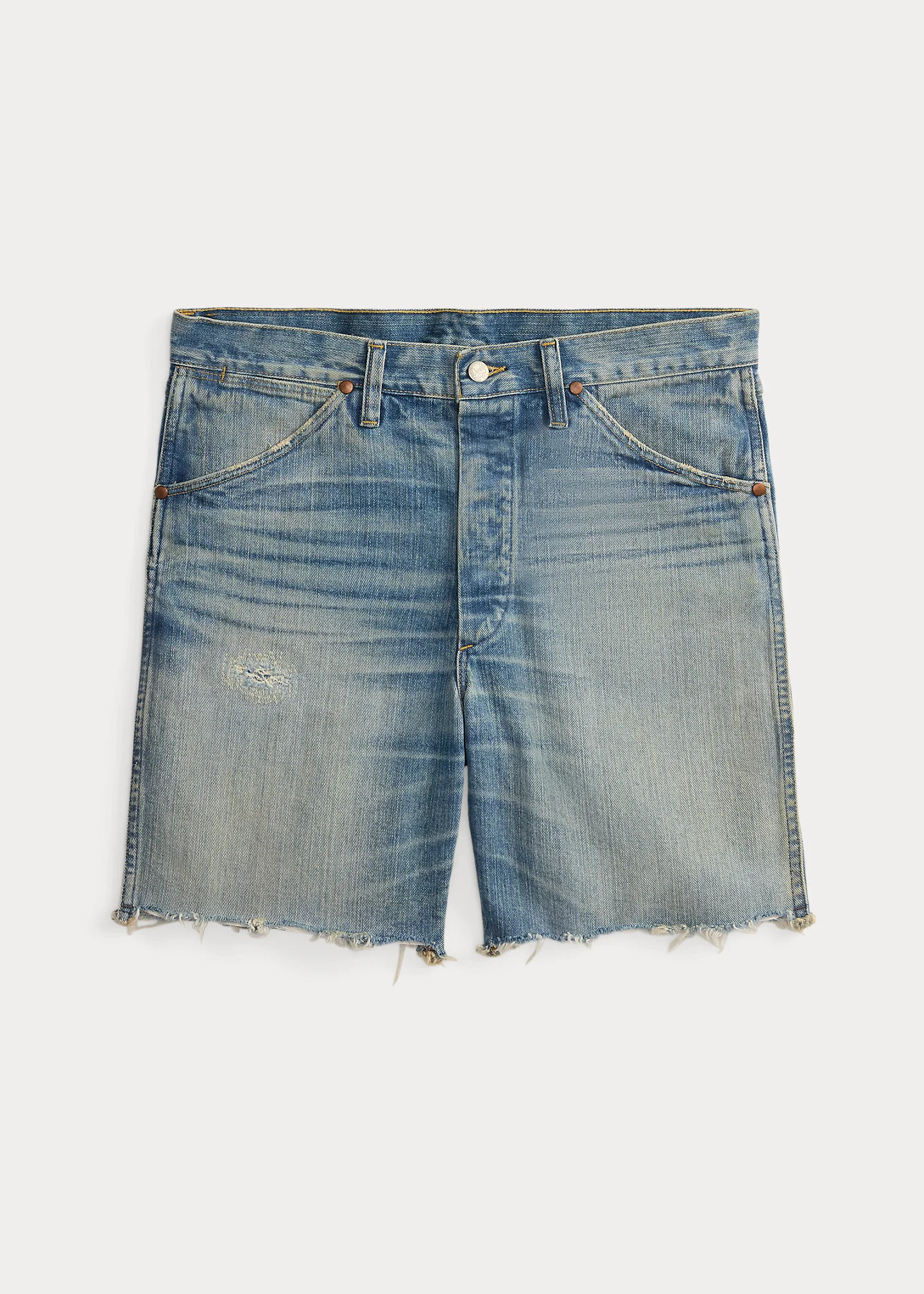 Straight-fitting shorts made from 12.3 oz. left-hand twill that is yarn-dyed with true indigo. Details inspired by vintage Western denim styles. Button-fly construction. Frayed hems. Heavily washed with repairs. Sanforized® to minimize shrinkage. DETAILS - Straight Fit with a regular rise. - All sizes have a 7.5" inseam. Size 32W has a 10.5" rise. - Belt loops. Button fly with a buttoned closure. - American-made buttons, rivets, and washer burrs. Five-pocket styling. “RRL” embroidery at the coin pocket. - Frayed hems. - Roughout suede “RRL”-debossed logo label at the back right waist. Leather patch at the back right pocket. - 100% cotton. - Machine washable. For best results, wear 90 days without washing. Imported. - Dyed with true indigo, which may rub off onto fabrics, leather, and upholstery. - Style Number: 100087069