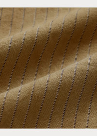 Straight-leg overalls made with lightweight linen-and-cotton cloth. Yarn-dyed striped pattern. Details inspired by workwear from the early 1900s. Adjustable buckled back. Button fly. Rinsed. DETAILS - Straight leg. - Size medium has a 28" inseam and an 18.5" leg opening. - Adjustable shoulder straps fasten at the chest with buttoned closures. Buttoned closures at each hip. Button fly. Metal buttons. - Bib pocket with a watch pocket. Two front waist angled pockets. Right hip coin pocket. Two back patch pockets. Right leg tool pocket. Cotton twill pocket lining. - Adjustable buckled back. “Double RL” label at the back. - 54% linen, 46% cotton. - Machine washable. - Imported. - Style Number: 100048612