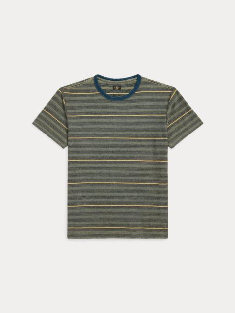Made with textured cotton jacquard. Dyed with true indigo. Striped pattern is inspired by a vintage blanket. DETAILS - Size medium has a 27.5" front body length, an 18.25" shoulder, and a 41" chest. - Crewneck. - Short sleeves. - 100% cotton. - Machine washable. - Imported. - Dyed with true indigo, which may rub off onto fabrics, leather, and upholstery. - Style Number: 100048785