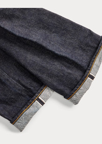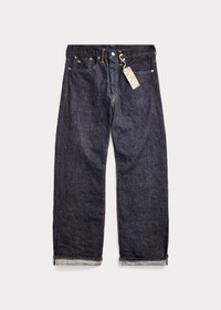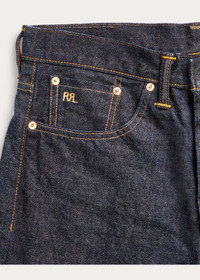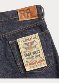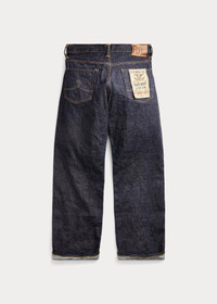 Relaxed-fitting jeans made in America with Tennessee-grown cotton. Yarn is ring-spun and rope-dyed in Japan using true indigo. Woven on vintage wooden shuttle looms in Japan to create custom 15.92 oz. right-hand twill. Selvedge construction inspired by 1930s denim styles. DETAILS - Vintage 5-Pocket Fit: the most relaxed silhouette, with the longest rise and a straight leg. - Size 32W has a 10.25" rise and an 18.25" leg opening. - Hand-set, chain-stitched waistband with inserted belt loops for added durability. Button fly with our signature buttoned closure ensures a consistent fit through years of wear. - American-made buttons, copper-tone rivets, and washer burrs. Five-pocket styling. “RRL” embroidery at the selvedge coin pocket. Twill pocket lining. - Leather "RRL"-debossed logo label at the back right waist. - Shell: 100% cotton. Patch: 100% leather. - Machine washable. For best results, wear 90 days without washing. - Made in USA with imported components. - Dyed with indigo, which may rub off onto fabrics, leather, and upholstery. - Style Number: 600419