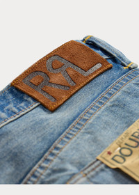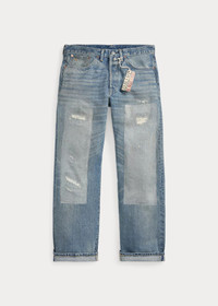 Relaxed-fitting jeans made in America from 13.75 oz. Japanese selvedge denim. Yarn-dyed with indigo. Repaired with left-hand twill from Japan. Button fly. Sanforized® to reduce shrinkage. DETAILS - Vintage 5-Pocket Fit: the most relaxed silhouette, with the longest rise and a straight leg. - Size 32W has a 10.25" rise and an 18.25" leg opening. - Hand-set, chain-stitched waistband with inserted belt loops for added durability. Button fly with our signature buttoned closure ensures a consistent fit through years of wear. - American-made buttons, copper-tone rivets, and washer burrs. Five-pocket styling. “RRL” embroidery at the selvedge coin pocket. Cotton twill pocket lining. - Roughout suede “RRL”-debossed logo label at the back left waist. - 100% cotton. - Machine washable. For best results, wear 90 days without washing. - Made in USA of imported components. - Dyed with indigo, which may rub off onto fabrics, leather, and upholstery. - Style Number: 100056587