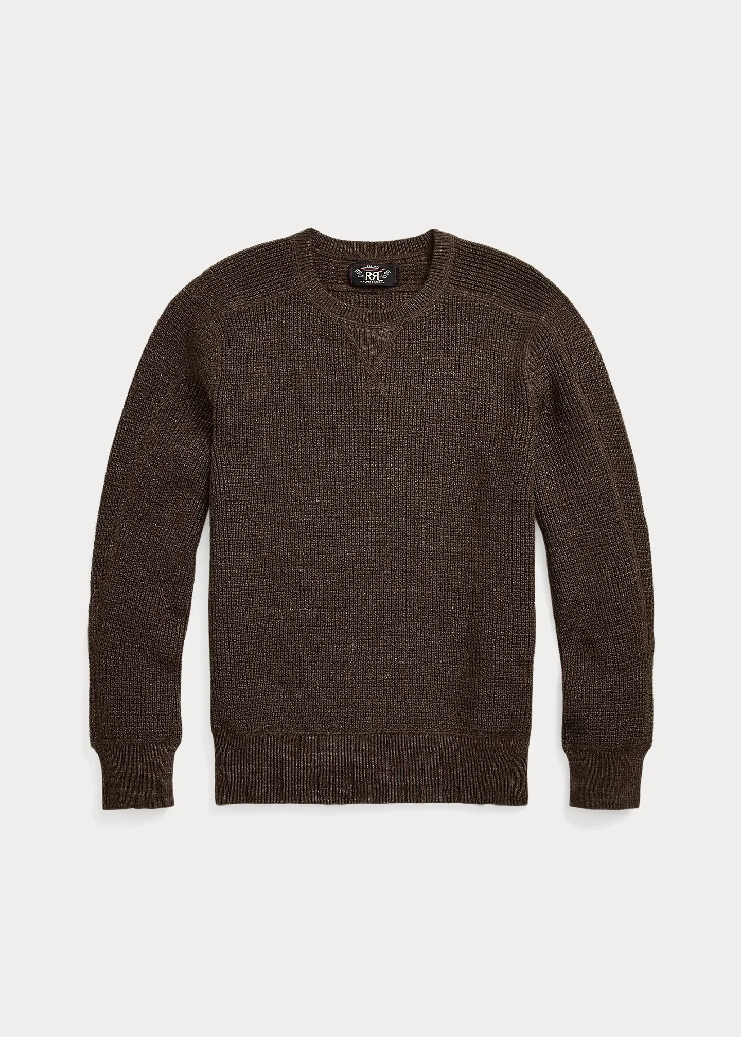 Made with cotton and wool yarns that are pre-twisted for a soft feel and a vintage look. Waffle-knit construction. Crewneck with a V-inset. Ribbed cuffs and hem. DETAILS - Size medium has a 25.75" front body length, a 17" shoulder, a 40" chest, and a 32.75" sleeve length. Sleeve length is taken from the center back of the neck. - Crewneck. Rib-knit V-inset. - Long sleeves with rib-knit cuffs. - Rib-knit hem. - Black colorway: 61% cotton, 39% wool. Dark Olive colorway: 59% cotton, 41% wool. - Hand wash or dry clean. - Imported. - Style Number: 100028156