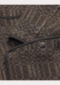 Sweater jacket knit with wool and cashmere yarns using a birdseye-jacquard technique. Pattern is inspired by a vintage plaid motif from the ’60s. Herringbone binding throughout for a sturdy construction. Adjustable buckled twill belt at the back. Specially washed for added softness. Custom metal snaps. DETAILS - Size medium has a 26.25" front body length, a 25.25" back body length, a 17.75" shoulder, a 43" chest, and a 33.5" sleeve length. Sleeve length is taken from the center back of the neck. - Shawl collar. Snapped placket. Metal snaps custom-developed with a “Double RL Ralph Lauren Manhattan N.Y.” logo. - Long sleeves. - Two chest patch pockets. Two front waist snapped pockets. - Herringbone binding throughout. - Adjustable buckled twill belt at the back. - 99% wool, 1% cashmere (exclusive of trim). - Hand wash or dry clean. - Imported. - Style Number: 100065511