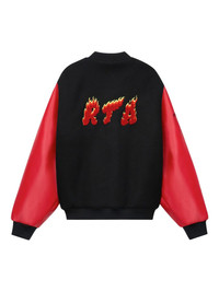 flame-logo leather-sleeve jacket