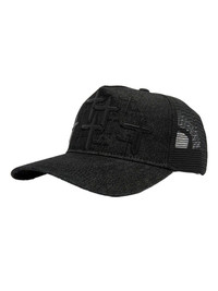 Gideon trucker cap Highlights - Black - Cross motif - Mesh back panel - Structured crown - Curved peak Imported Composition Acrylic 85%, Wool 15%