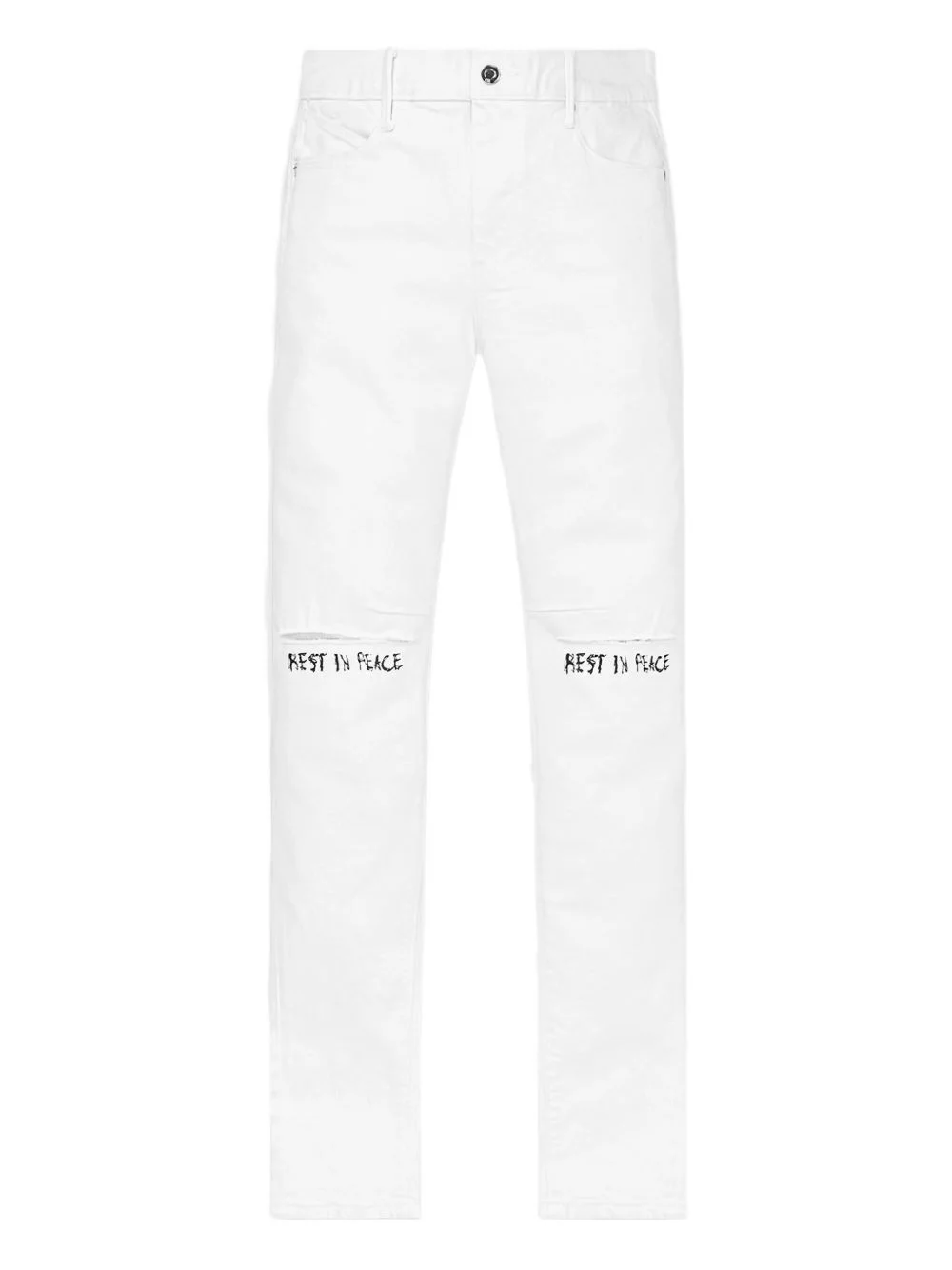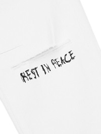 Bryant Rest In Peace jeans Highlights - White - Front rest in peace print - Back signature rta crosses - Five-pocket design - Belt loops - Button fastening Imported Composition Cotton 98% Washing instructions Read Manufacturer Guidelines
