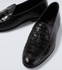 Rubinacci's Marphy Loira loafers are an elegant, understated design crafted from croc-effect leather. Polished to a high shine, the pair is finished with soft tassels hanging from the vamps. Product Details - Upper: leather - Lining: leather - Sole: leather insole and sole - Toe shape: almond toe - Made in Italy - Includes: shoe box - Designer color name: Black With Tassels - Item color: black - Item number: P01067146 Size & Fit - Fits slightly small to size - we recommend trying a half size larger - European sizes