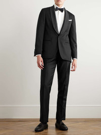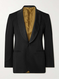 Rubinacci's tuxedo jacket is modelled after a style from the 1930s. Tailored from pure wool and fully lined in lustrous satin, it's framed with a grosgrain shawl collar and has covered buttons jacquard-woven with a checked pattern. Size & Fit - Fits true to size. Take your normal size - Those with broad shoulders may wish to take the next size up - Regular cut blazer, tailored for a comfortable fit - Internal shoulder pads - Mid-weight, non-stretchy fabric - Model is shown wearing an IT 48 - Model measures: chest 38"/ 96cm, waist size 30, height 6'1"/ 185cm Details & Care - Black wool and grosgrain - Shawl collar, functioning buttoned cuffs, chest and two front welt pockets, double vents, internal pockets, fully lined - 100% wool; lining: 100% silk - Dry clean