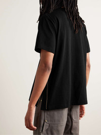 Sacai’s latest collaboration with workwear powerhouse Carhartt WIP features everyday staples updated with Chitose Abe's signature deconstructionist approach. This cotton-jersey T-shirt has a canvas chest pocket - detailed with a co-branded appliqué - and gold-tone zips along the sides to customise the fit. Size & Fit - Size 1 = S, 2 = M, 3 = L and 4 =XL - Model wears a size larger to achieve a looser fit - Mid-weight, slightly stretchy fabric - Model is shown wearing a 2 - Model measures: chest 36"/ 92cm, height 6'1"/ 185cm Details & Care - Black cotton-jersey and canvas - 100% cotton - Machine wash