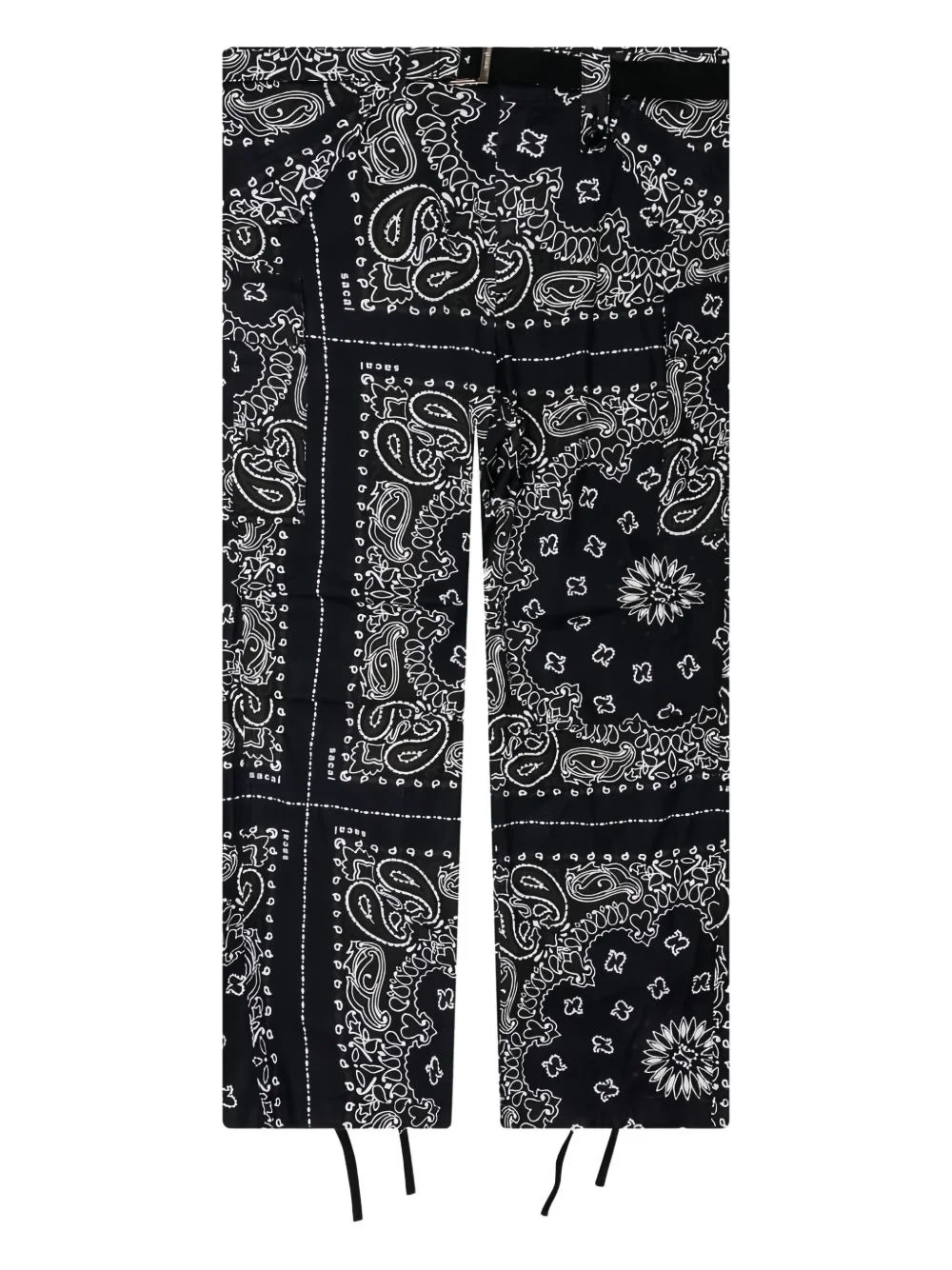 bandana-print belted trousers Highlights - Navy blue - Paisley bandana print - Belted waist - Drawstring hem Made in United States Composition Cotton 100% Washing instructions Read Manufacturer Guidelines
