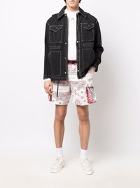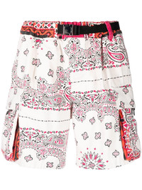 bandana-print cargo shorts off white cotton bandana print logo-buckle detail buckle fastening two side flap pockets elasticated waistband straight leg knee-length Imported Composition Cotton 100% SIZE & FIT Model measurements Height 6 ft 2 in(1.89 m) Bust/Chest 37.79 in(96 cm) Hips 37 in(94 cm) Waist 29.92 in(76 cm) FittingInformation This piece fits true to size. We recommend you get your regular size Designed for a slim fit at the waist and loose over the leg Made with a mid-weight non-stretch fabric Washing instructions Machine Wash
