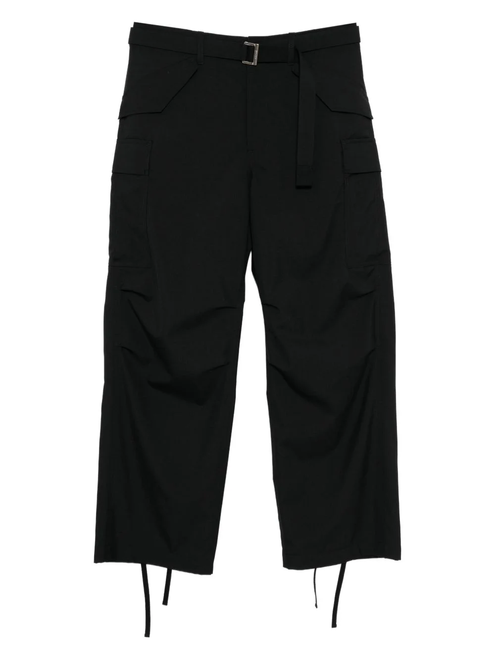 belted cargo pants Highlights - Black - Front concealed zip fastening - Detachable belt Imported Composition Polyester 70%, Wool 30% Washing instructions Dry Clean Only