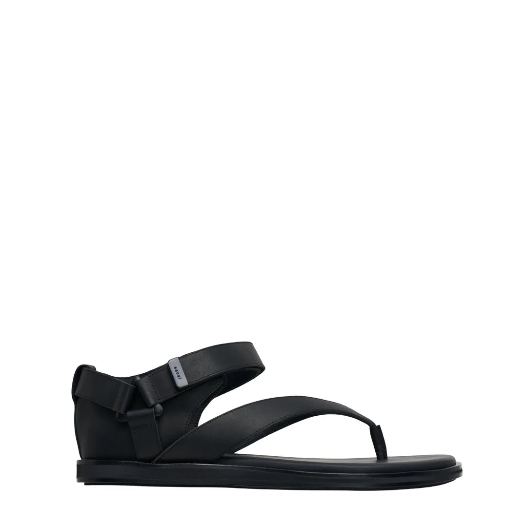 600078578BLK041 / 26-03994M/00/001 - Adjustable ankle strap with metal buckle - Thong-style toe post - Premium black leather construction - Flat sole design - Minimalist architectural silhouette - Slip-on style with secure ankle closure sacai Belted Flip Flops deliver contemporary luxury with architectural strap design and minimalist functionality. Crafted from premium black leather with adjustable ankle strap and metal buckle hardware, featuring the brand's signature deconstructed aesthetic. The elevated thong silhouette and substantial sole construction create a sophisticated take on casual summer footwear.