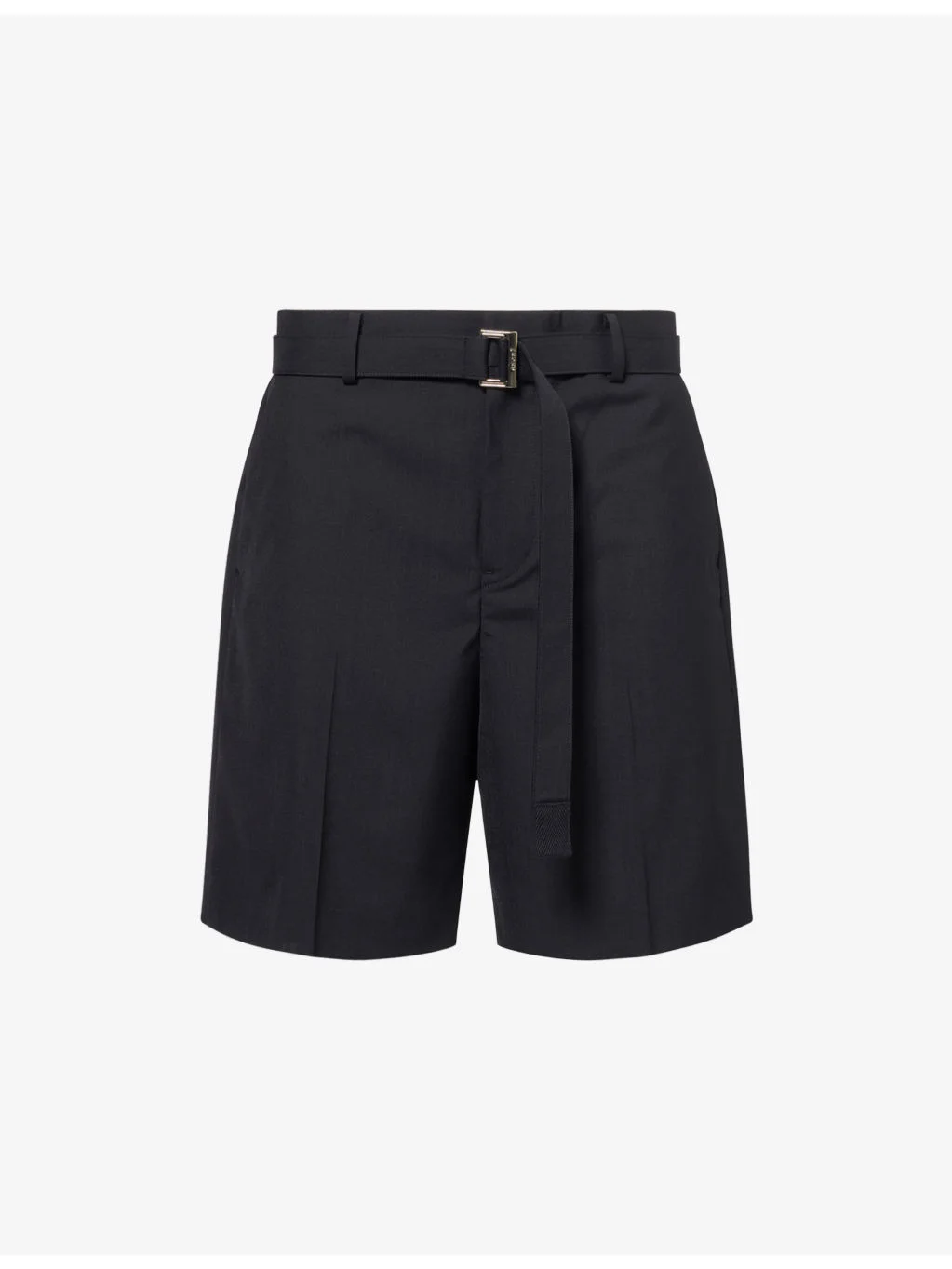 PRODUCT DETAILS - Sacai woven shorts - 70% polyester, 30% wool - Button, hook-and-eye and zip-fly fastening - Relaxed fit, belted, belt loops, side pockets, back welt pockets, pressed front creases - Dry clean - Model is 6ft 2in/1.88m and wears a size medium - Midweight, non-stretch Ref: R04489279