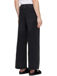 Non-stretch denim jeans. · Fading and whiskering throughout · Belt loops · Detachable cinch belt at layered waistband · Five-pocket styling · Zip fly Supplier color: Black 100% cotton. Made in Japan 261445M186003