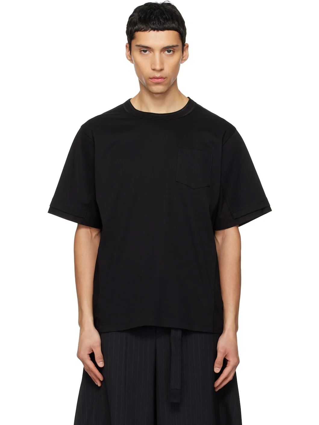 Cotton jersey and broadcloth T-shirt. · Rib-knit crewneck · Patch pocket at chest · Zip pocket at side seams Supplier color: Black Body 1: 100% cotton. Body 2: 100% cotton. Made in Japan 261445M213039