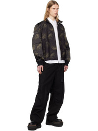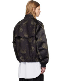 Plain-woven cotton bomber jacket. Floral and polka dot pattern printed throughout. · Button fastening at stand collar · Two-way zip closure · Welt pockets · Elasticized hem · Saddle shoulders · Zip pocket and pen slots at sleeve · Darts at sleeves · Rib-knit cuffs · Storm flap at back · Full cupro satin lining Supplier color: Black Body: 100% cotton. Trim 1: 100% polyester. Trim 2: 55% polyester, 44% cotton, 1% polyurethane. Lining: 100% cupro. Made in Japan 251445M175013