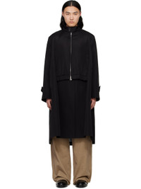 Silk- and cotton-blend faille coat. · Layered construction · Button fastening at stand collar · Two-way zip closure · Welt pockets · Elasticized trim at front and back · Button tab at cuffs · Storm flap at back · Central vent at back hem · Partial cupro satin lining Supplier color: Black Body: 54% silk, 46% cotton. Trim: 55% polyester, 44% cotton, 1% polyurethane. Lining: 100% cupro. Made in Japan 251445M176004