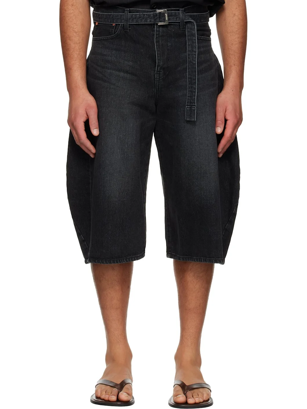 Non-stretch denim shorts. · Fading and whiskering throughout · Belt loops and detachable cinch belt at waistband · Five-pocket styling · Zip fly · Curved outseams · Patch pocket at outseam Supplier color: Black 100% cotton. Made in Japan 261445M193005