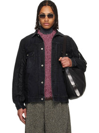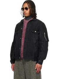 Non-stretch denim and nylon twill jacket. · Fading and raw edges throughout · Spread collar · Button closure · Flap pockets at chest · Tucks and welt pockets at front · Partially rib-knit hem and cuffs · Zip vent at side seams · Utility pocket at sleeve Supplier color: Black Body 1: 100% cotton. Body 2: 100% nylon. Trim 1: 55% polyester, 44% cotton, 1% polyurethane. Trim 2: 100% polyester. Made in Japan 261445M177002