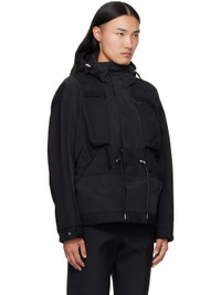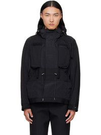 Wool-blend broadcloth and grosgrain jacket. · Paneled construction · Cord-lock drawstring at hood, waist, and hem · Concealed two-way zip closure and press-stud placket · Webbing daisy chain at chest · Zip pockets at chest · Welt pockets at waist · Elasticized cuffs · Full satin lining Supplier color: Black Body 1: 70% polyester, 30% wool. Body 2: 100% polyester. Trim: 60% cotton, 40% nylon. Lining: 100% cupro. Made in Japan 252445M180008