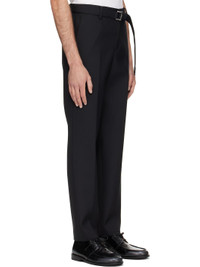 Plain-woven wool-blend trouser. · Belt loops and detachable cinch belt at waistband · Four-pocket styling · Zip fly · Creased legs · Full satin and bonded jersey lining Supplier color: Black Body: 70% polyester, 30% wool. Lining 1: 100% polyester. Lining 2: 100% cupro. Made in Japan 252445M191008