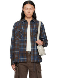 Cotton flannel shirt. · Check pattern throughout · Spread collar · Button closure · Flap pockets at chest · Shirttail hem · Pleats at buttoned barrel cuffs · Box pleat at back yoke Supplier color: Brown/Blue 100% cotton. Made in Japan 252445M192005