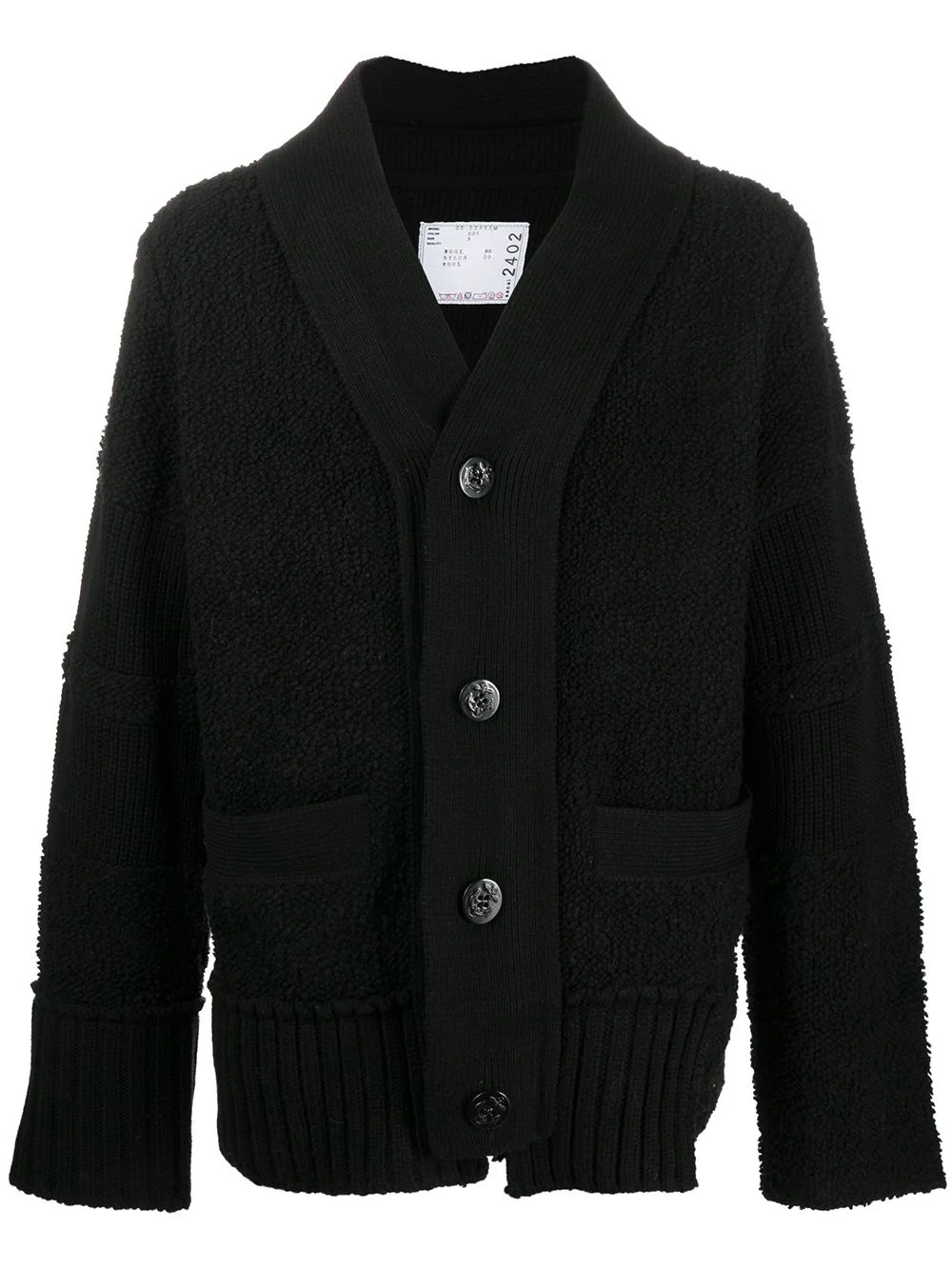 button-down cardigan Highlights - Black - Wool blend - Button fastening - V-neck - Long sleeves - Two front patch pockets Imported Composition Wool 80%, Nylon 20% SIZE & FIT Model measurements Height 6 ft 1 in(1.85 m) Bust/Chest 35.82 in(91 cm) Hips 37.79 in(96 cm) Waist 29.13 in(74 cm) FittingInformation This piece fits true to size. We recommend you get your regular size Cut for a loose fit Made with a mid-weight fabric Washing instructions Dry Clean Only