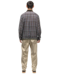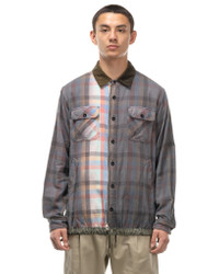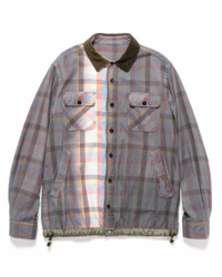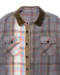 A multi colour plaid button down shirt with button cuffs. Contrast collar, buttoned chest pockets with slant hand pockets on each side. Contrast cinched hem with toggles, contrast collar and dual button/ zip front. Made in Japan. DETAILS - 22-02838M - 100% Cotton - Side hand pockets - Button chest pockets - Contrast collar - Button & zip fastening front - Contrast hem cinch - Made in Japan