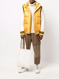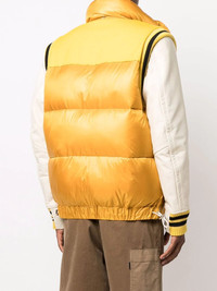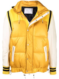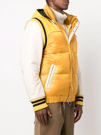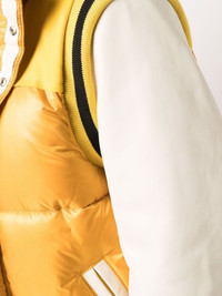 contrast-sleeve padded jacket blue/black wool panelled design padded panels long sleeves contrasting-fabric sleeves front snap-button and zip fastening stripe detailing elasticated cuffs drawstring hem two side slit pockets Imported Composition Outer: Nylon 100%, Calf Leather 100%, Wool 100%, Polyester 50%, Cotton 50% Lining: Wool 100%, Polyester 100% SIZE & FIT Model measurements Height 6 ft 1 in(1.86 m) Bust/Chest 36.61 in(93 cm) Hips 36.61 in(93 cm) Waist 29.92 in(76 cm) FittingInformation This piece fits true to size. We recommend you get your regular size Cut for a loose fit Made with a mid-weight non-stretch fabric Washing instructions Do Not Wash/Do Not Dry Clean
