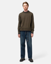 Cotton Cashmere Knit Pullover Khaki x Navy