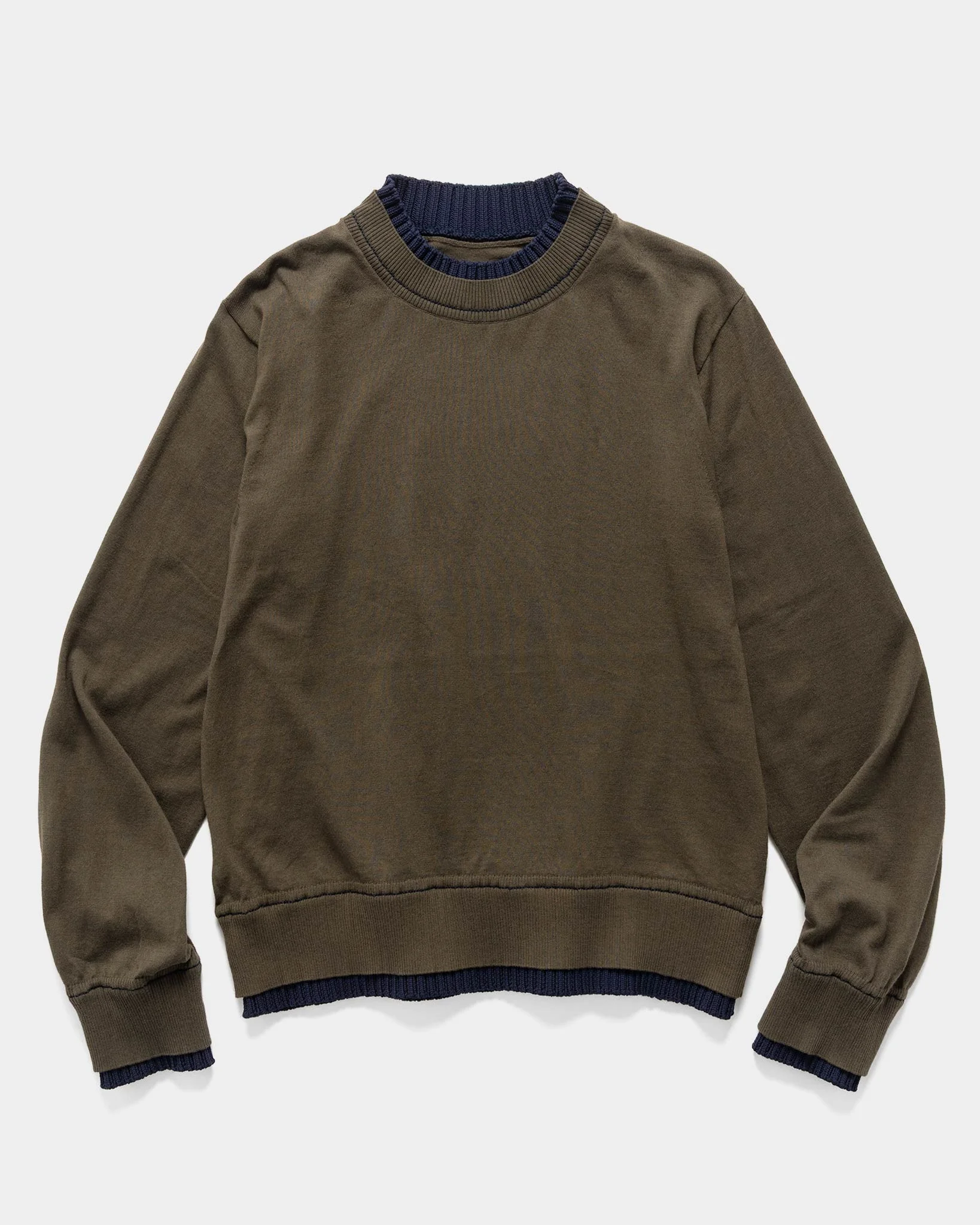 The sacai Cotton Cashmere Knit Pullover reimagines a classic crewneck through the brand’s signature hybrid design. Crafted from a luxuriously soft cotton-cashmere blend, its faux layered construction reveals chunky rib knit trim at the collar, cuffs, and hem for subtle contrast. Cut with a regular fit, it offers a trim silhouette that’s ideal for standalone wear or easy layering. DETAILS - 25-03792M - Main: 85% Cotton, 15% Cashmere - Parts: 100% Polyester - Regular fit - Crewneck design - Layered collar, hem and cuffs - Knit and sweat ribbed collar, hem and cuffs - Made in China