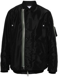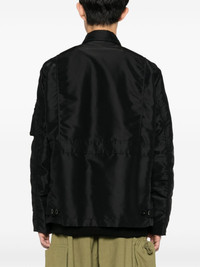contrasting-trim layered bomber jacket Highlights - Black - Shell - Contrasting trim - Classic collar - Long sleeves with ribbed cuffs - Sleeve zip pocket - Two front welt pockets - Adjustable side straps - Ribbed layered hem - Internal slip pocket - Full lining - Front button and two-way zip fastening Imported Composition Outer: Nylon 100% Acrylic 60%, Wool 40% Lining: Polyester 100% SIZE & FIT Model measurements Height 6 ft 2 in(1.87 m) Bust/Chest 33.46 in(85 cm) Hips 36.22 in(92 cm) Waist 29.52 in(75 cm) FittingInformation Designed to be unstructured, offering a loose fit throughout Made from a midweight non-stretch fabric This piece fits true to size – take your usual size Washing instructions Dry Clean Only