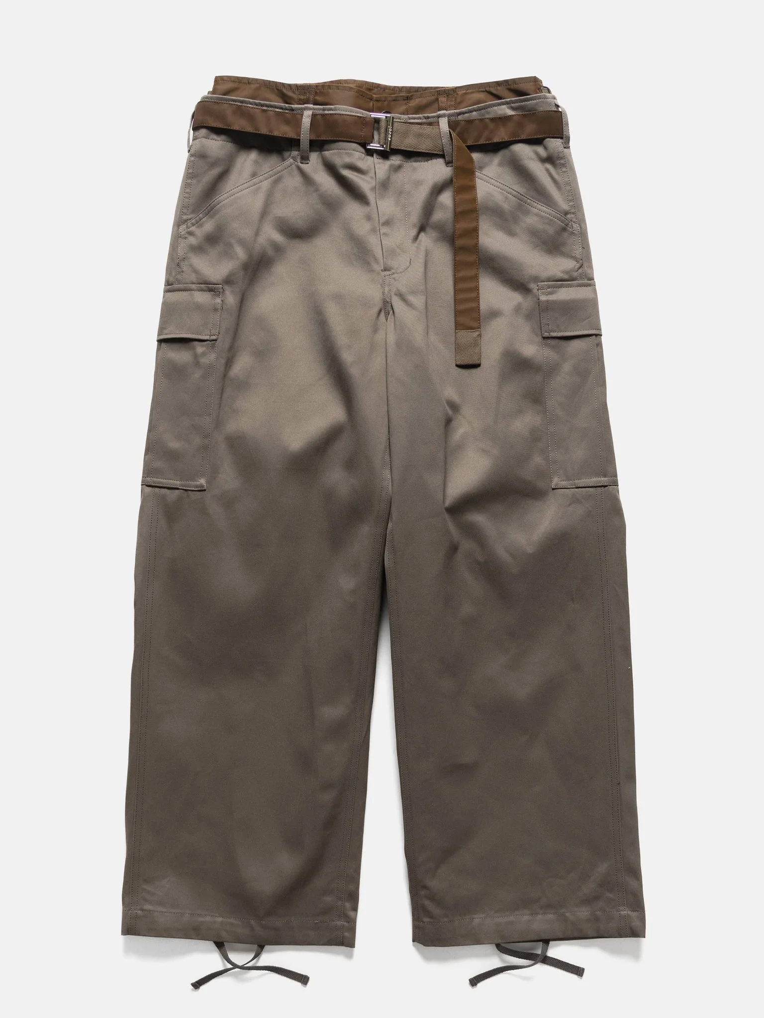 The sacai Cotton Chino x Nylon Twill Pants blends formal tailoring with utilitarian design to create a versatile pant that transitions effortlessly from casual to refined settings. Crafted from sturdy cotton chino with nylon twill accents, they offer a relaxed fit with articulated knees for unrestricted movement. The result is a smart, adaptable style with everyday practicality and a subtly subversive edge. DETAILS - 26-03910M - Body: 100% Cotton - Parts: 100% Nylon - Relaxed, straight fit - Double waist construction - Integrated waist belt - Zip fly with button closure - Six-pocket construction - Flapped hand and back pockets - Cargo pockets with straps - Articulated knees - Drawstring hems - Made in Japan
