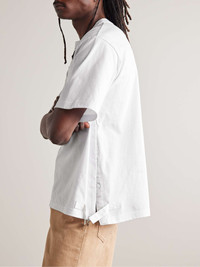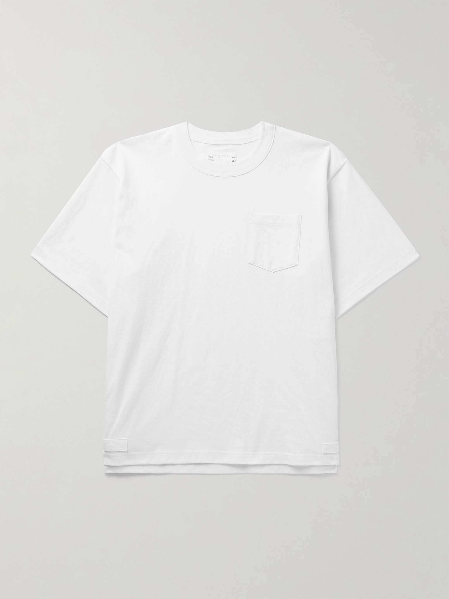 This classic T-shirt is updated with the kind of cool details you'd expect from Sacai. It's cut for a relaxed fit from cotton-jersey and has split hems that are held together with adjustable buckles and a row of concealed snaps. Size & Fit - Size 1 = S, 2 = M, 3 = L and 4 =XL - Fits true to size. Take your normal size - Model wears a size larger to achieve a looser fit - Designed for a relaxed fit - Lightweight, slightly stretchy fabric - Model is shown wearing a 3 - Model measures: chest 38"/ 96cm, height 6'2"/ 182cm Details & Care - Cream cotton-jersey - 100% cotton - Dry clean - Made in Japan