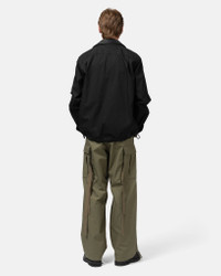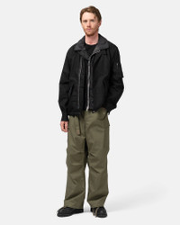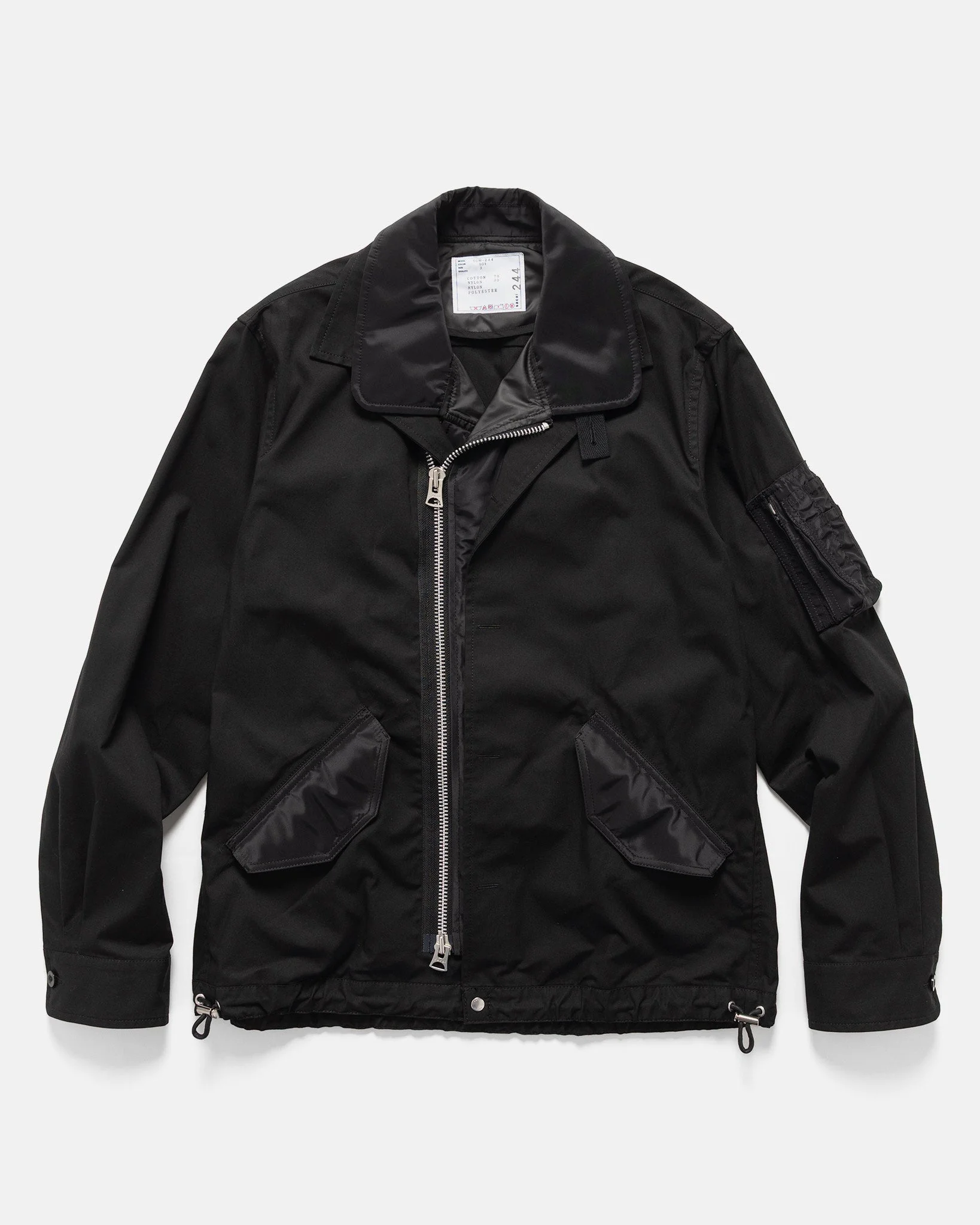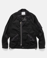 A hybrid of blazer and bomber, sacai’s Oxford Blouson delivers layered construction in a single, adaptable piece. The tonal cotton-nylon blend softens the contrast, enhancing versatility while preserving the brand’s signature subversive aesthetic. A dual closure and drawstring hem offer an adjustable silhouette, with waist flap pockets and a utility sleeve zip adding function to form. A refined yet unconventional layer for transitional wear. DETAILS - SCM-244 - Outer: 70% Cotton, 30% Polyester - Part 1: 100% Nylon - Liner: 100% Polyester - Filling: 100% Polyester - Classic fit - Double collar - Dual button and zip front closure - Flap closure hand pockets - Drawstring adjustable hem - Zip sleeve pocket - Made in Japan
