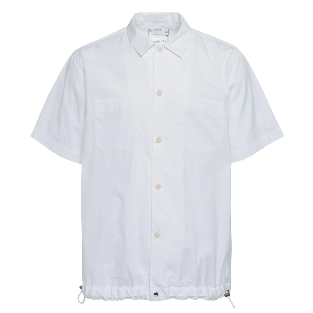 600078090OWT001 / SCM-319/00/151 - Button-front closure - Chest patch pockets - Elastic drawstring hem - Short sleeves - Classic point collar - Relaxed fit - Premium cotton poplin construction sacai Cotton Poplin Shirt delivers contemporary minimalism with Japanese design innovation and premium construction. Crafted from crisp cotton poplin in clean white, featuring an elastic drawstring hem and relaxed fit for modern versatility. The brand's signature deconstructed approach creates a refined yet casual silhouette perfect for layering.