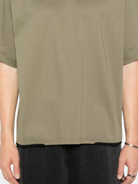 cotton T-shirt Highlights - Olive green - Contrasting panel detail - Crew neck - Short raglan sleeves Imported Composition Cotton 100% SIZE & FIT Model measurements Height 6 ft 2 in(1.87 m) Bust/Chest 38.97 in(99 cm) Hips 37.99 in(96.5 cm) Waist 29.52 in(75 cm) FittingInformation Designed for a boxy fit, intended for a loose fit throughout Made from a midweight non-stretch fabric, this piece offers minimal elasticity when worn