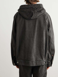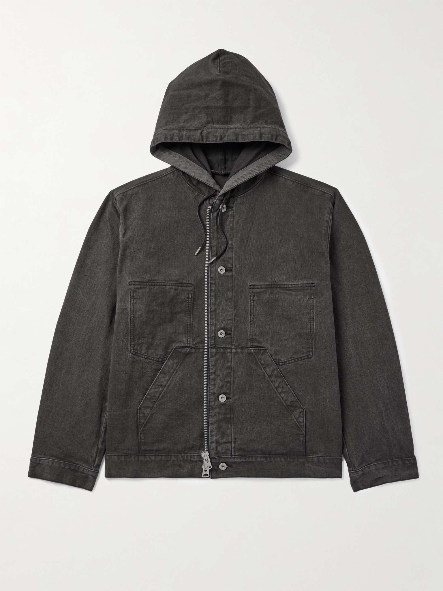 Sacai often reinterprets garment patterns to transform them into "unexpected shapes and silhouettes". This denim jacket is detailed with faux chest pockets and has a two-way zip as well as buttons, so you can wear it looser or closer. It's finished with a metal-tipped drawstring through the hood. Size & Fit - Size 1 = S, 2 = M, 3 = L and 4 =XL - Fits true to size. Take your normal size - Designed for a relaxed cut - Mid-weight, non-stretchy fabric - Model is shown wearing a 2 - Model measures: chest 38"/ 96cm, height 6'2"/ 188cm Details & Care - Dark-grey denim - Two-way zip and button fastenings - 100% cotton - Machine wash